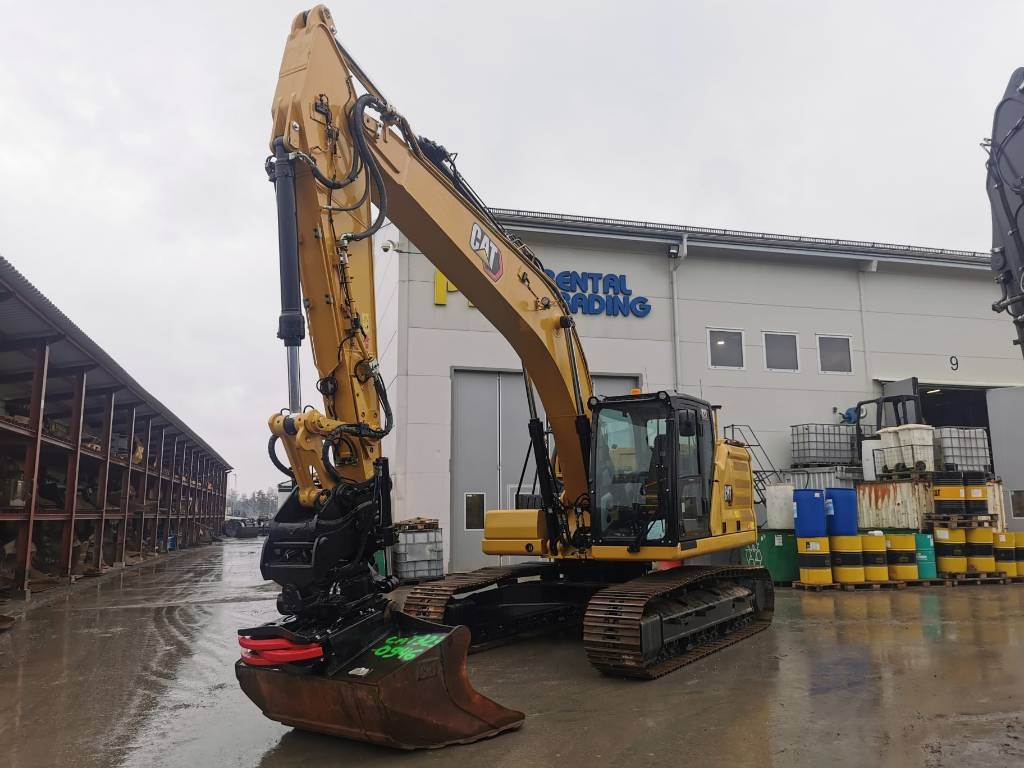 Utrustad med : Motor Steg 5 , Trimble 3D maskinstyrning , Hyd S70 Säkerhetsfäste ,Tiltrotator Cat-Rototilt TRS23 med grip , planerskopa , Dieselvärmare , Centralsmörjning , Klimatanläggning , Backkamera , sidokamera , Premium Förarstol , LED-arbetsbelysning , Tankningspump .