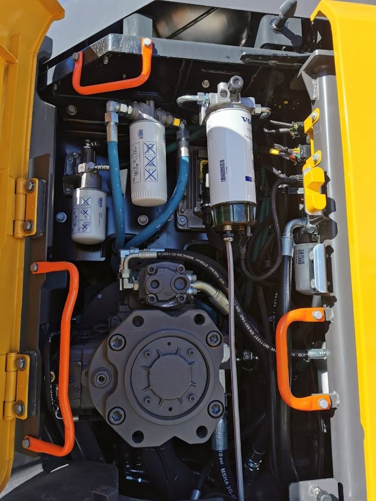Utrustad med : Motor Steg 5 , OilQuick fäste S70 , OilQuick Tiltrotator , förberedd för grip , planerskopa , tandskopa , Dieselvärmare , Centralsmörjning , Klimatanläggning , Backkamera , sidokamera , De Lux Förarstol , Extra LED-arbetsbelysning , Tankningspump , Flytlägesfunktion bomcylindrar , 600 mm bandplattor , 3,05 m sticka(HD) , 6,2 m bom(HD) .